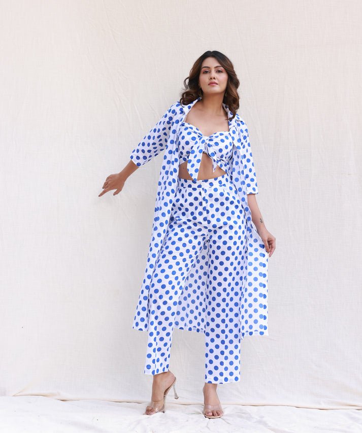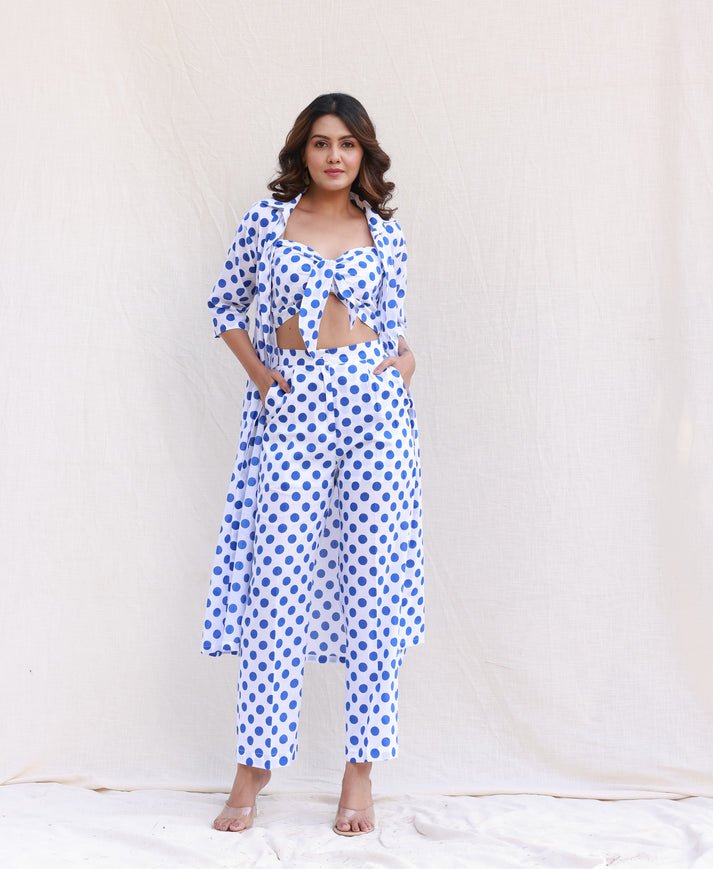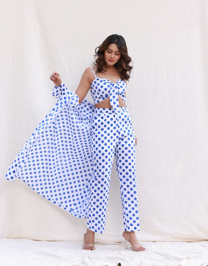 Blue Polka Dot Crop Top Co-ord Set